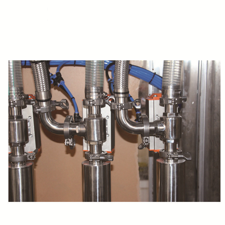 Na vrsti mizica za dovajanje dobavi plastenke eno za drugo na premikajoči se SS transport. Steklenice prihajajo v polnilno mesto preko SS transporterja. Polnilna šoba za polnjenje predhodno nastavljene količine tekočine v steklenico. Šesterokotni dozirni blok vijakov omogoča enostavno uporabo različnih volumnov polnjenja z minimalno porabo časa. Glavni pogon je sestavljen iz reduktorja, ki ga poganja AC motor in prek krmiljenega frekvenčnega pogona. Hitrost lahko nastavite v smislu steklenic na minuto. Transportni pogon je sestavljen iz gonila motorja z gredjo gredjo, ki ga krmili frekvenčni pogon. Gumb lahko nastavi hitrost transporterja.